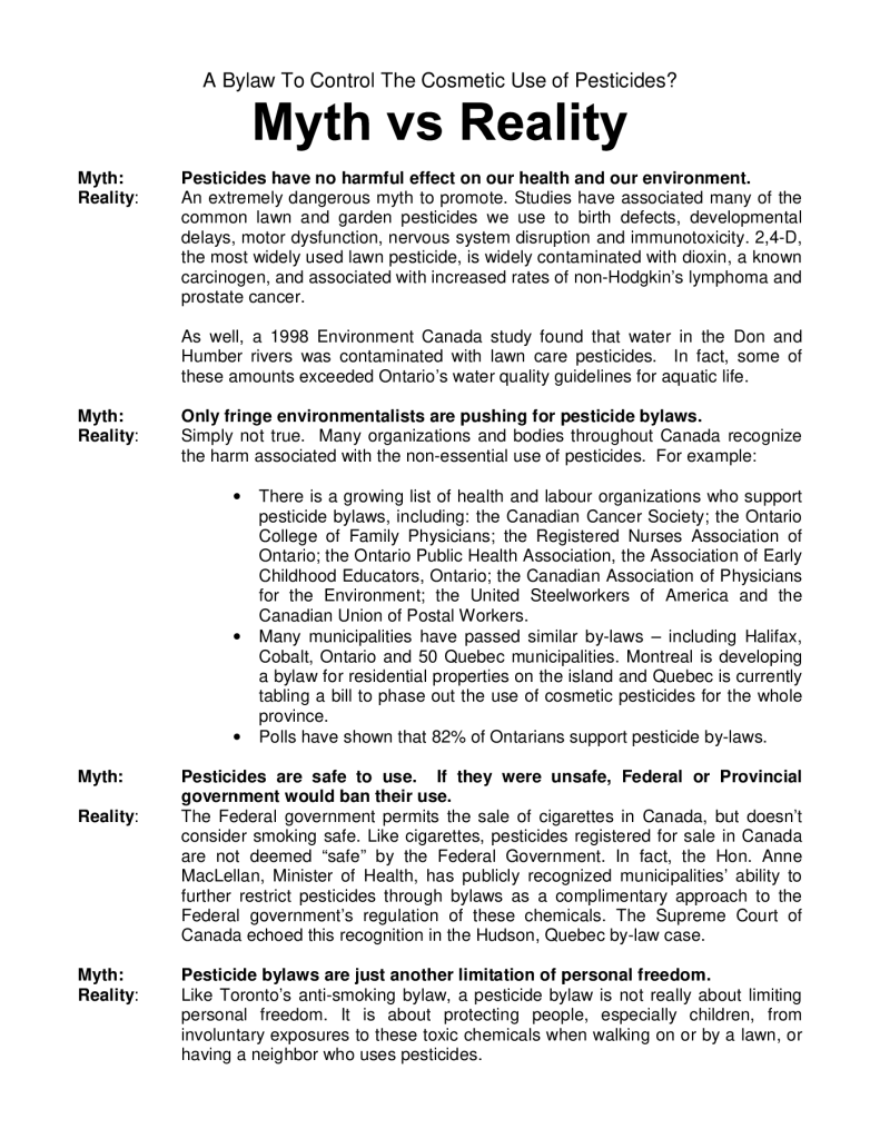 A bylaw to control the cosmetic use of pesticides?: Myth vs. Reality