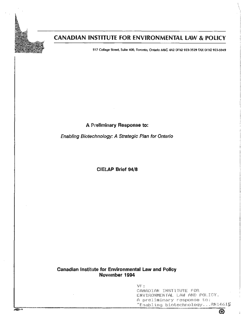 File 2.0 - CIELAP Biotechnology and Nanotechnology briefs and responses
