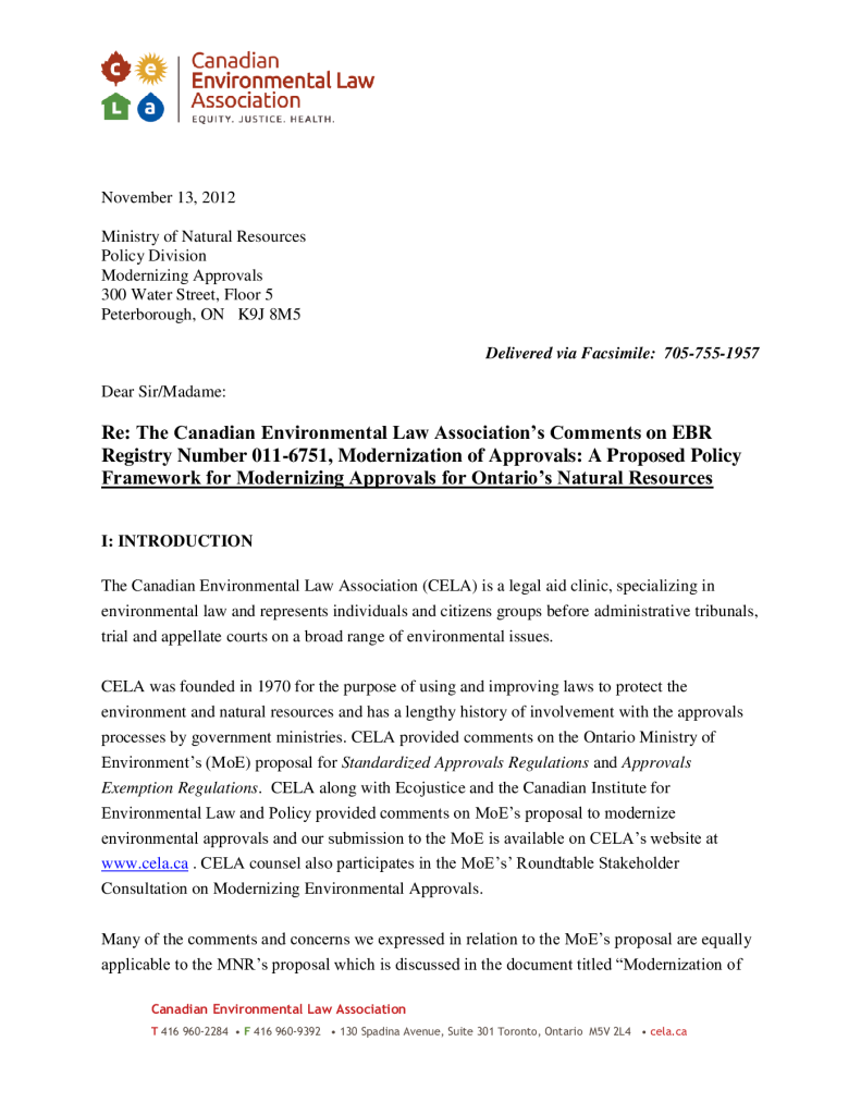 A Proposed Policy Framework for Modernizing Approvals for Ontario’s Natural Resources