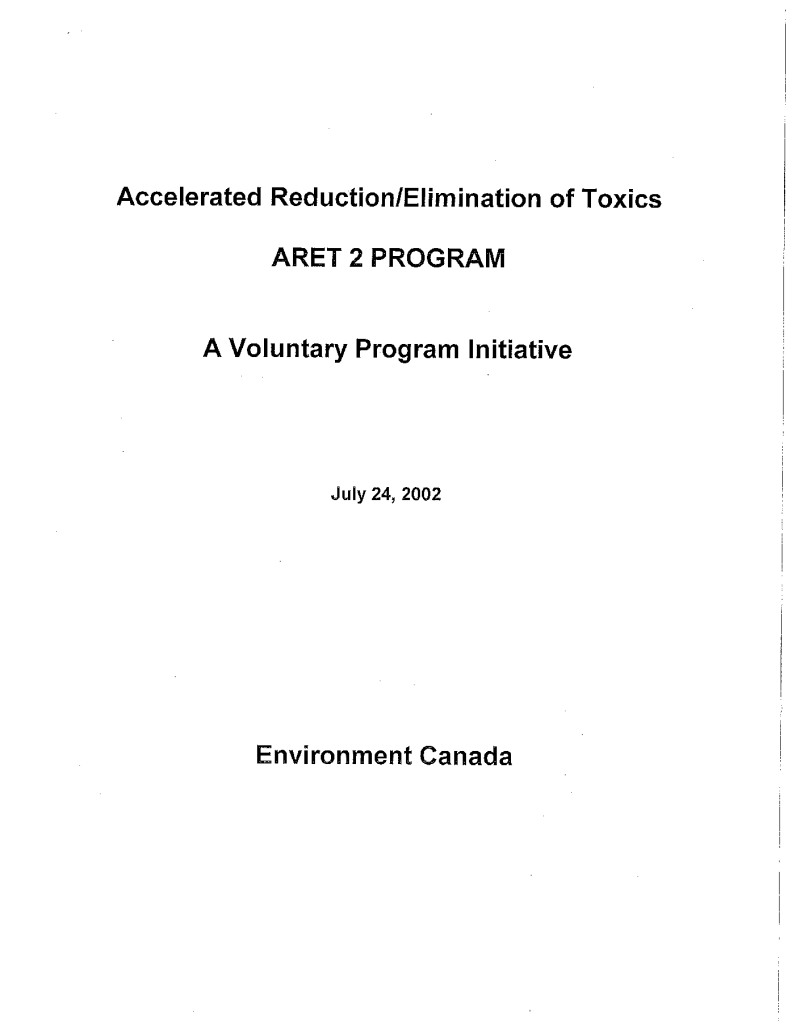 Accelerated Reduction/Elimination of Toxics ARET 2 program : a voluntary initiative