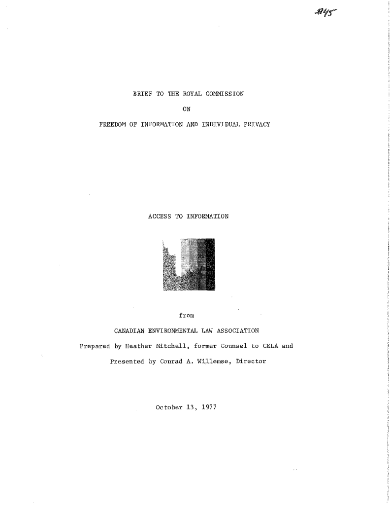 Access to information: Brief to the Royal Commission on Freedom of Information & Individual Privacy