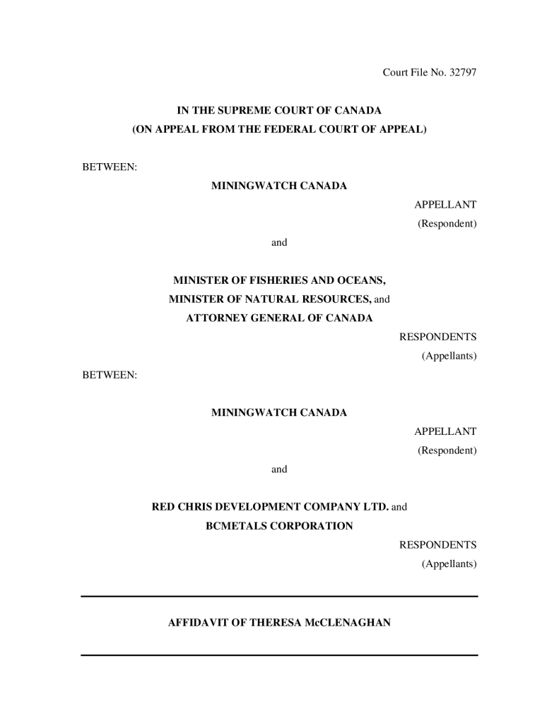 Affidavit of Theresa McClenaghan re: MiningWatch Canada and Red Chris Development Ltd.