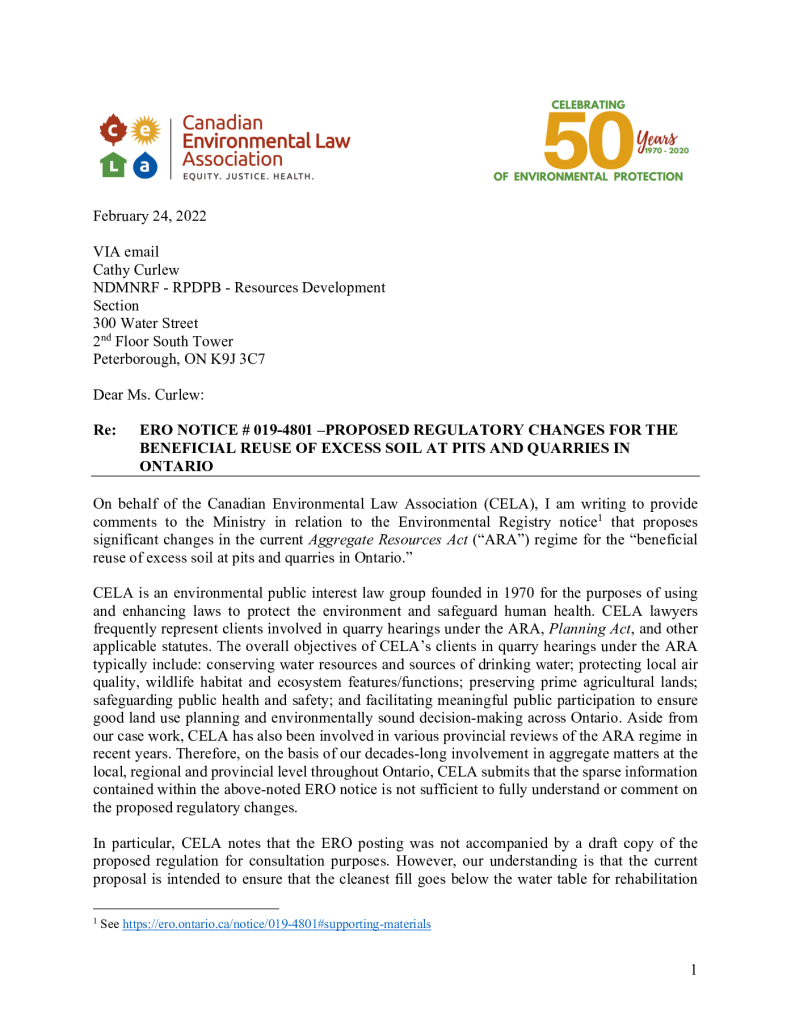 Aggregate Resources Act – beneficial reuse of excess soil at pits and quarries