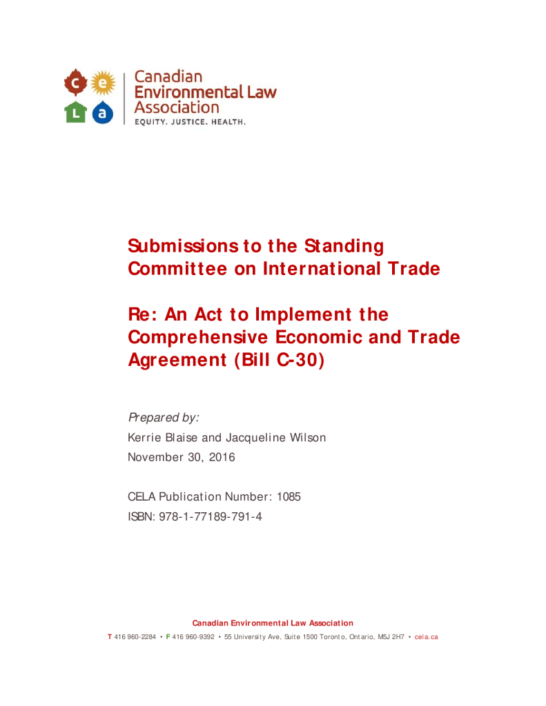 An Act to Implement the Comprehensive Economic and Trade Agreement (Bill C-30)