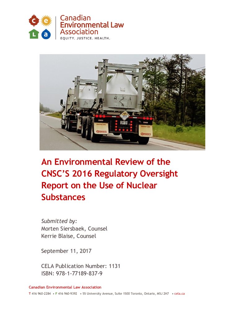 An Environmental Review of the CNSC’s 2016 Regulatory Oversight Report on the Use of Nuclear Substances