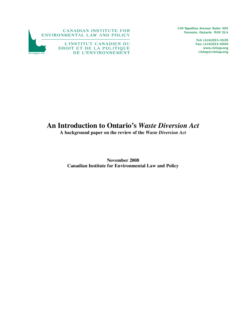 An introduction to Ontario’s waste diversion act : A background paper on the review of the Waste Diversion Act