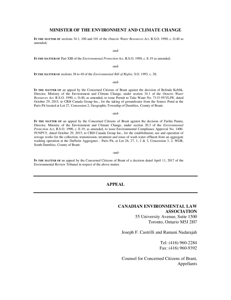 Appeal to the Minister in the Matter of Concerned Citizens of Brant