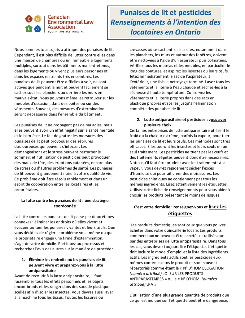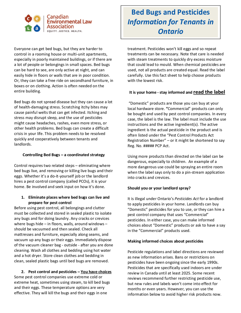 Bed Bugs and Pesticides – Information for Tenants in Ontario