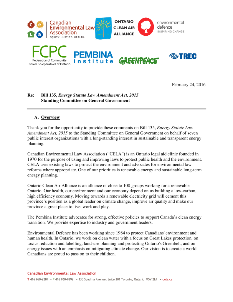 Bill 135, Energy Statute Law Amendment Act, 2015