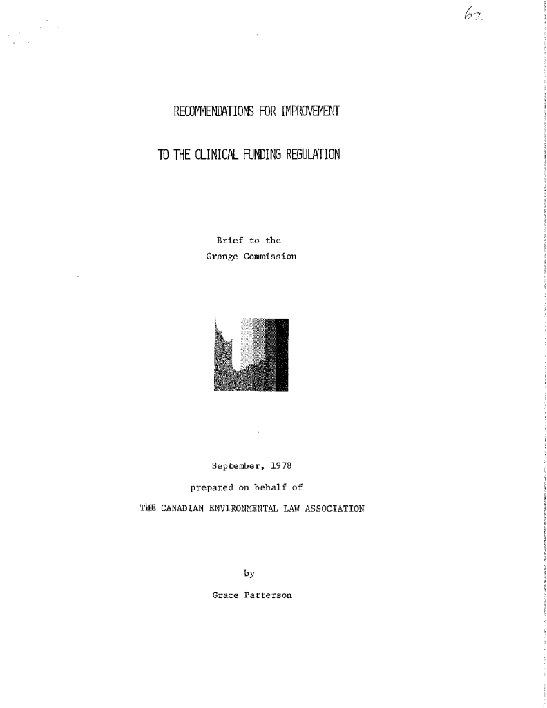 Brief to the Grange Commission on recommendations to the Clinical Funding Regulation