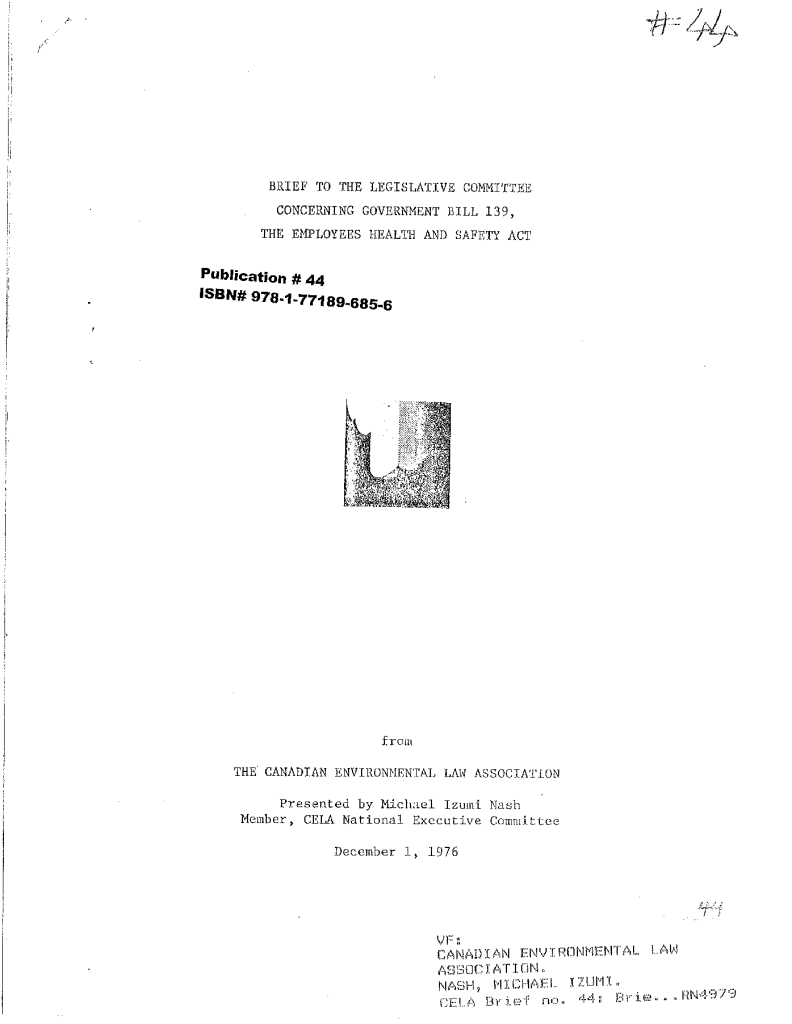 Brief to the legislative committee concerning government Bill 139, The Employees Health and Safety Act