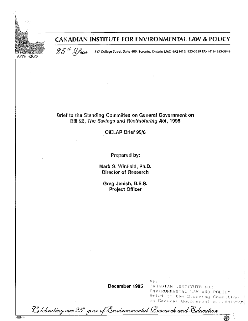 Brief to the standing committee on general government on bill 26 , the savings and restructuring act , 1995
