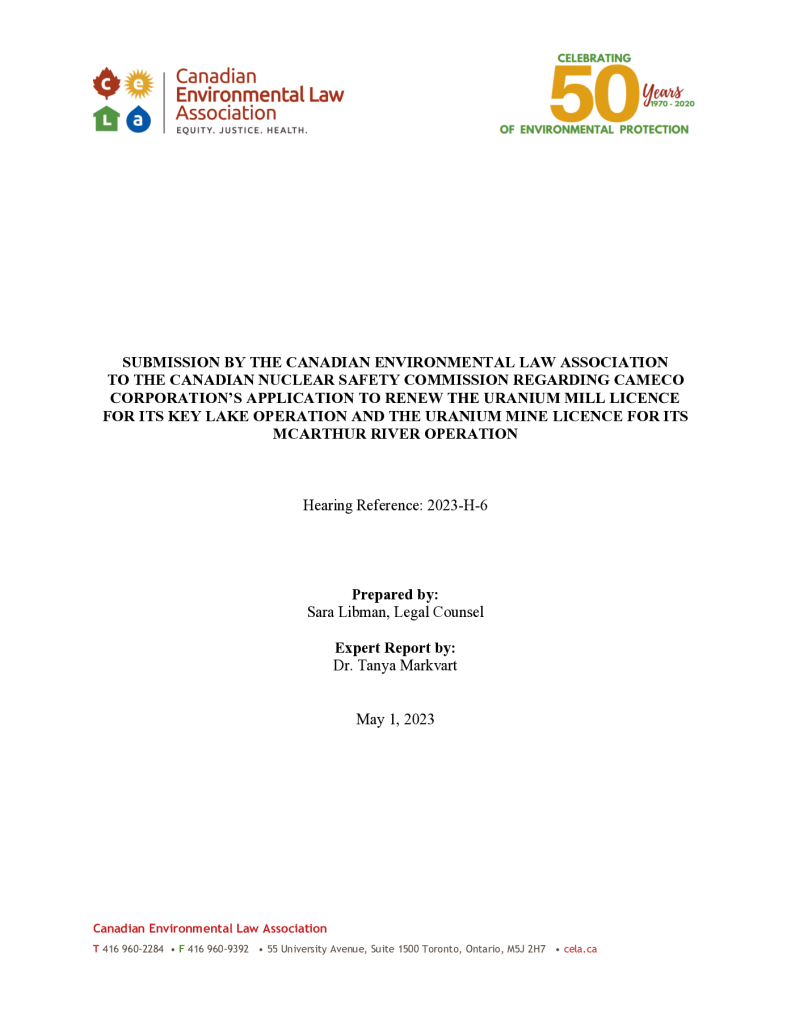 Cameco Corporation Application to Renew Uranium Mill Licence of Key Lake and McArthur River Operations