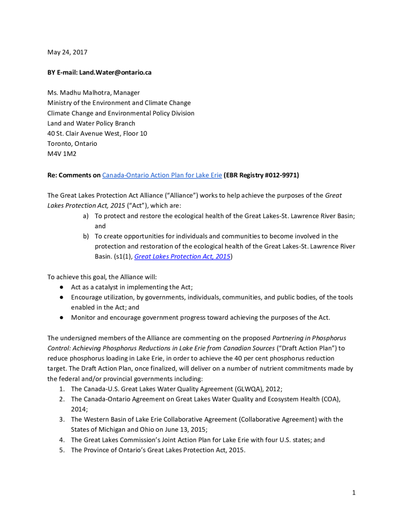 Canada-Ontario Action Plan for Lake Erie