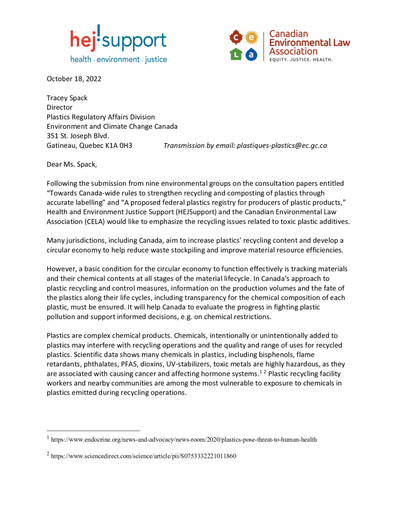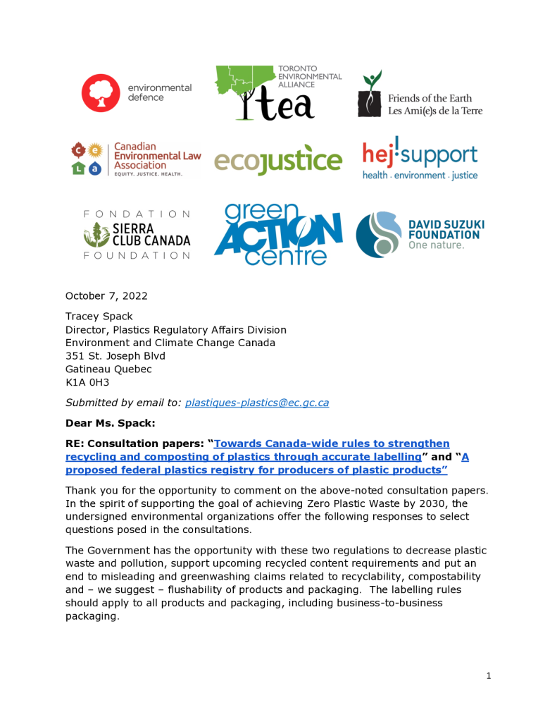 Canada-wide Rules to Strengthen Labelling for Recycling and Composting and Addressing Impacts of Toxic Additives in Plastics
