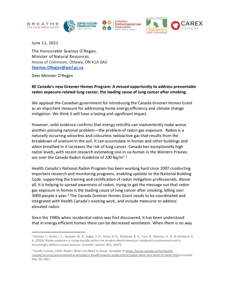 Canada’s new Greener Homes Grant Program: A missed opportunity to address preventable radon exposure