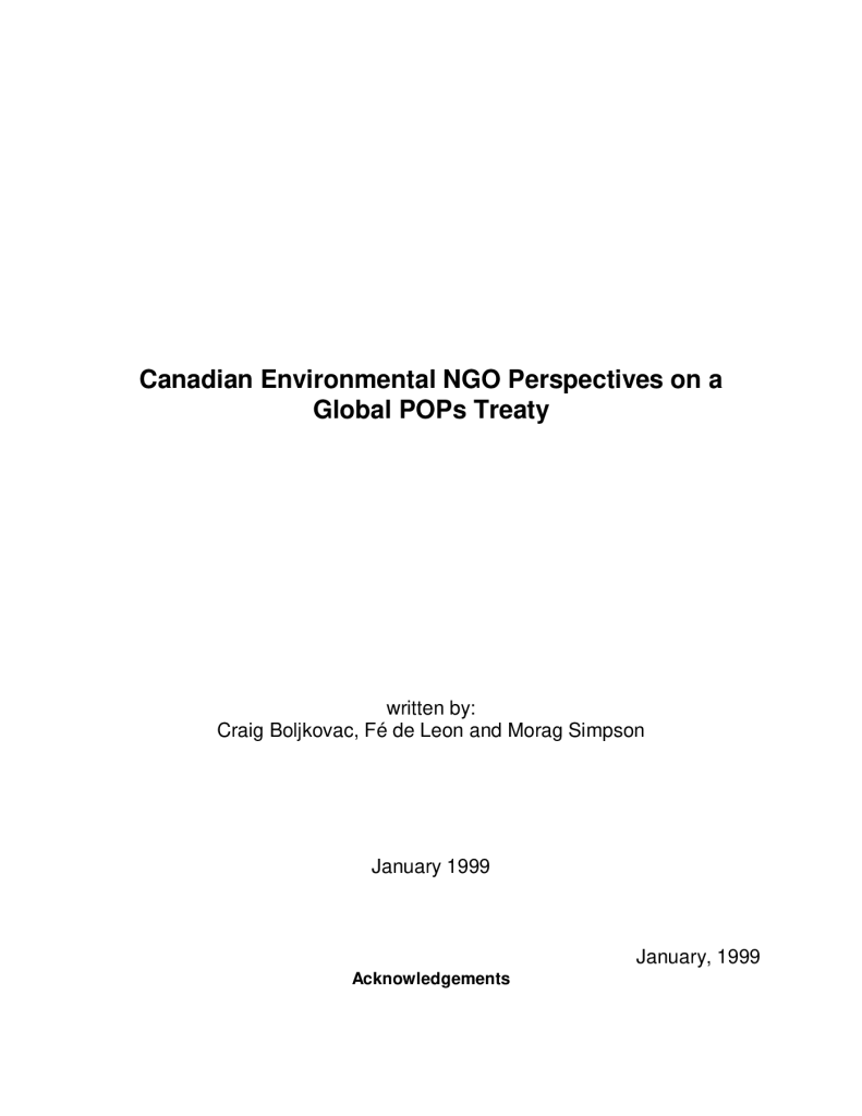 Canadian Environmental NGO Perspectives on a Global POPs Treaty
