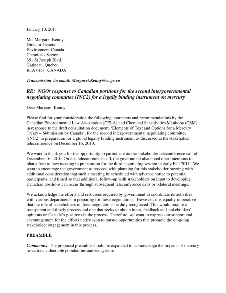 Canadian positions for INC2 – a legally binding instrument on mercury