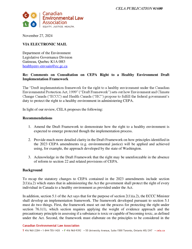 Canadian Environmental Protection Act (CEPA) carcinogens