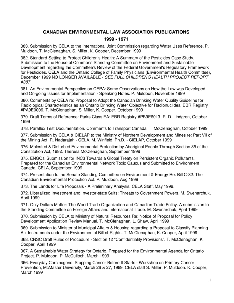 CELA Publications List 1971-1999