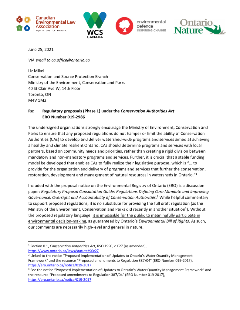 CELA Submission on Conservation Authorities Act Regulatory Proposals