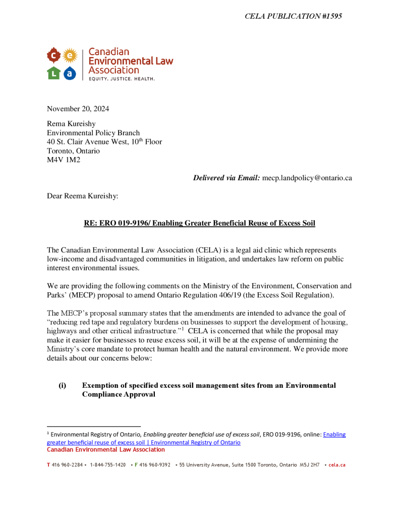 CELA Submission on Enabling Greater Beneficial Reuse of Excess Soil