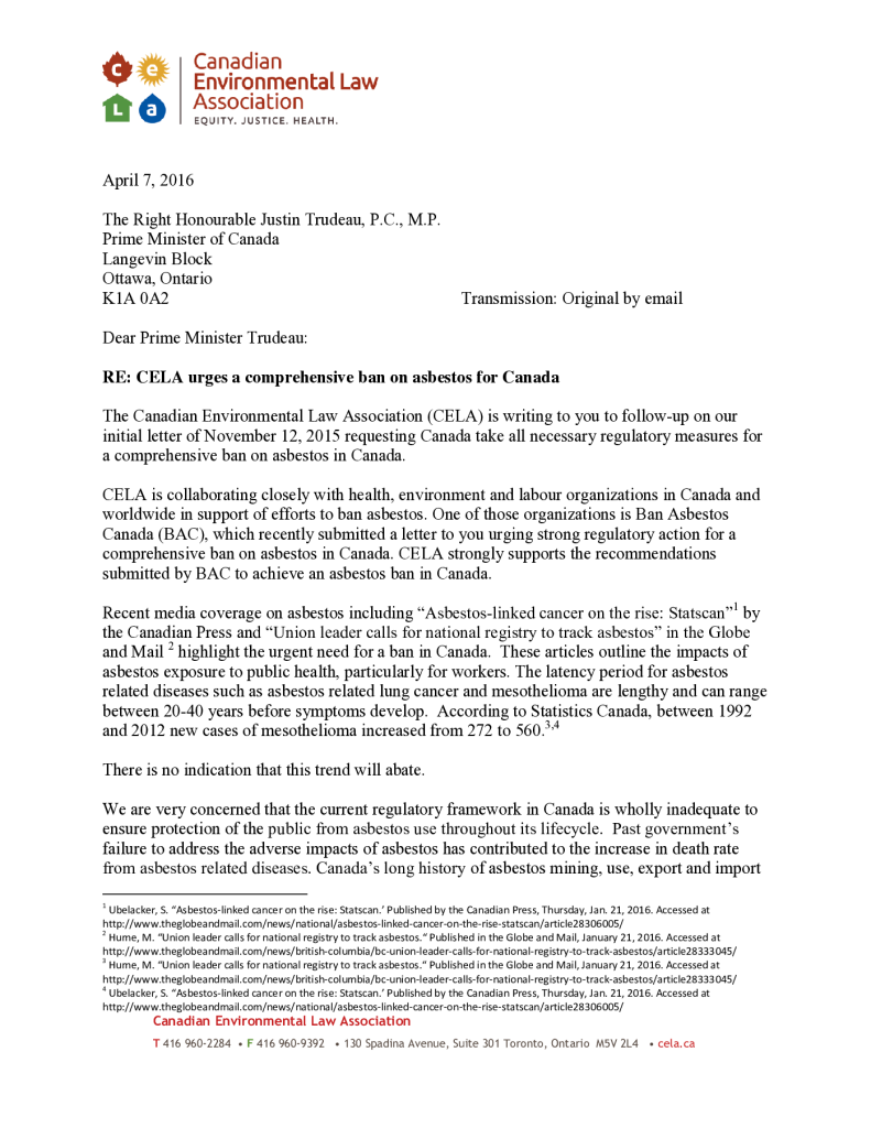 CELA urges a comprehensive ban on asbestos for Canada