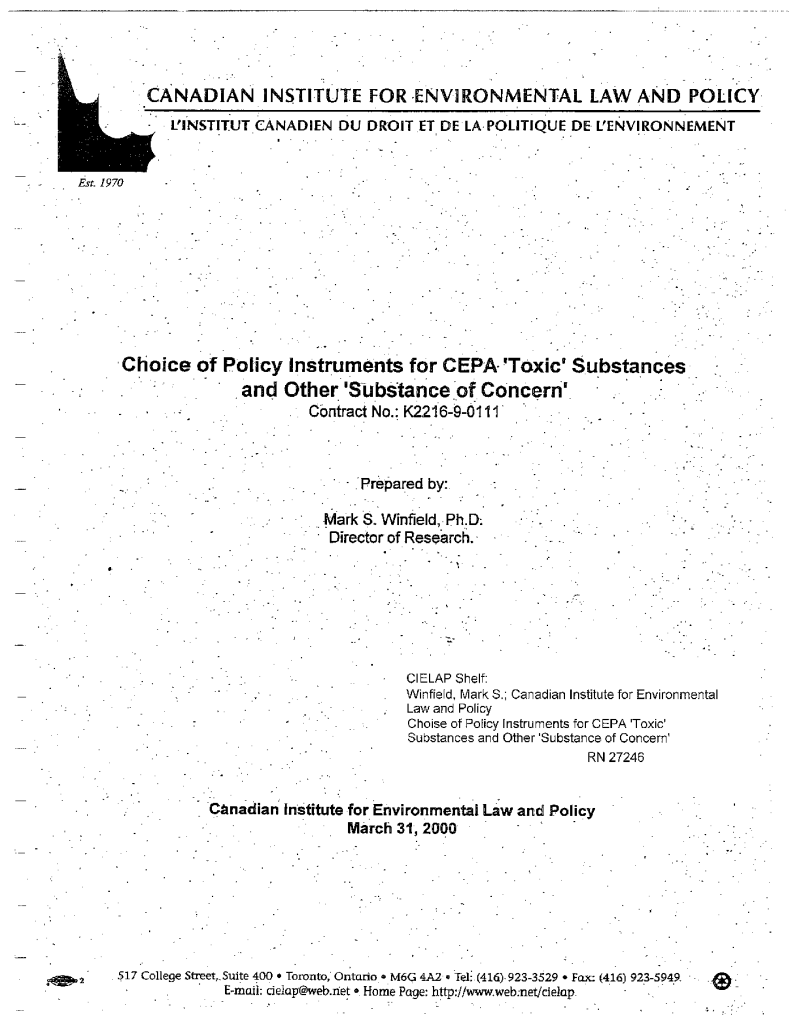 Choice of policy instruments for CEPA ‘toxic’ substances and other ‘substances of concern’