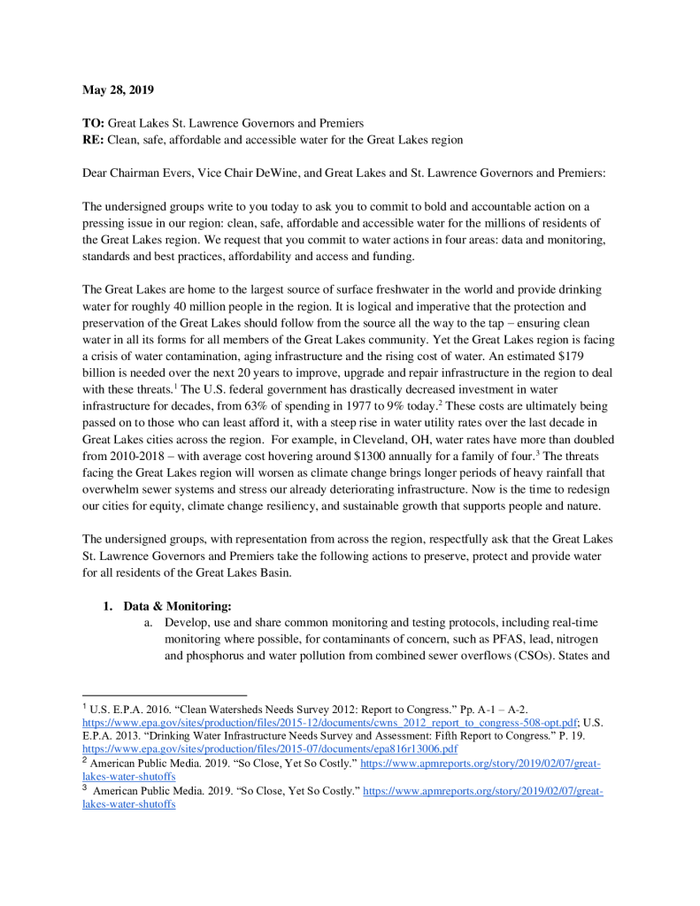 Clean, safe, affordable and accessible water for the Great Lakes region