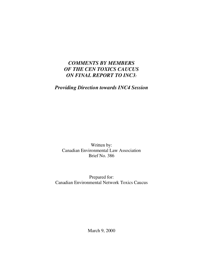 Comments by members of the CEN Toxics Caucus on final report to INC3: Providing direction towards INC4 Session