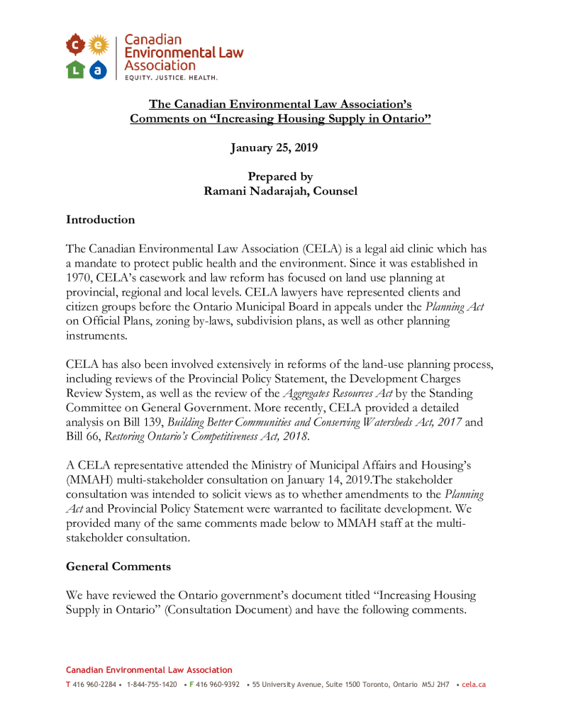 Comments on Increasing Housing Supply in Ontario