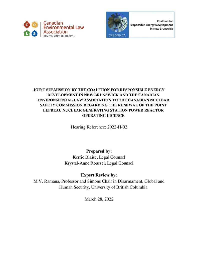 Comments on NB Power’s Request for 25-Year Nuclear Operating Licence