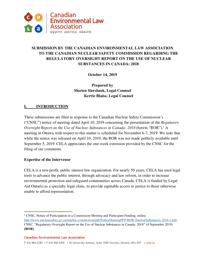 Comments on Regulatory Oversight Report on the Use of Nuclear Substances in Canada