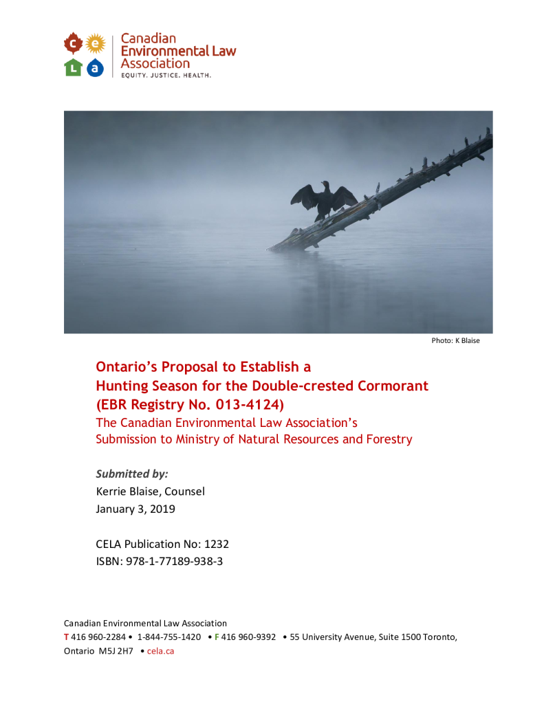 Comments Re: Ontario’s Proposal for a Cormorant Hunting Season