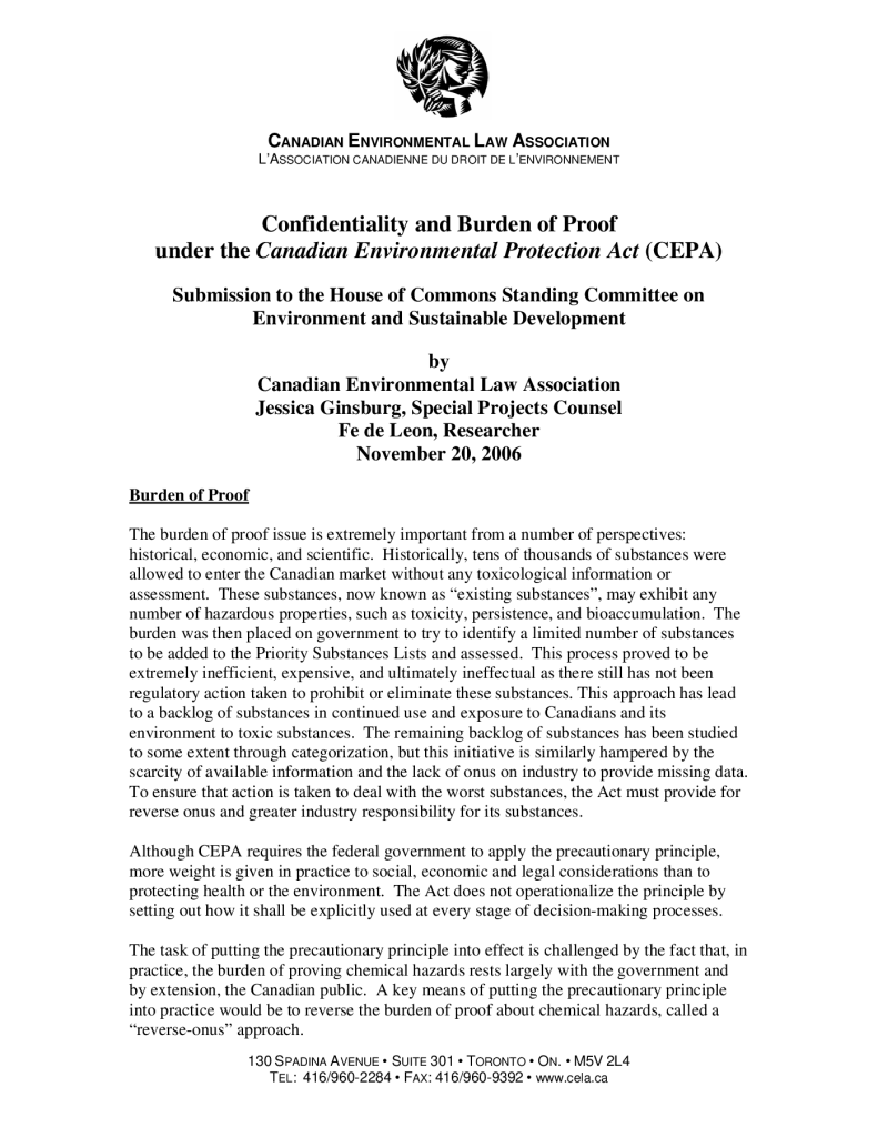 Confidentiality and Burden of Proof under CEPA