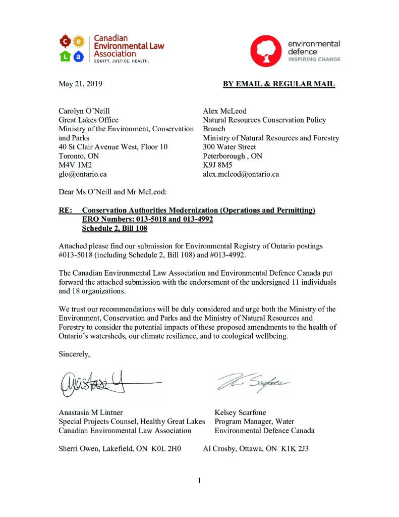 Conservation Authorities Modernization ERO Numbers: 013-5018 (including Schedule 2, Bill 108) and 013-4992