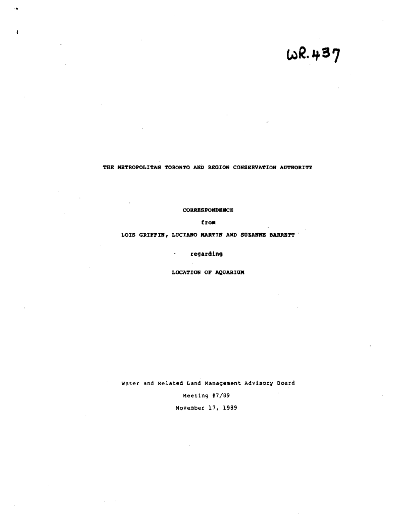 Correspondence from L. Griffin L. Martin and S. Barrett regarding location of Aquarium