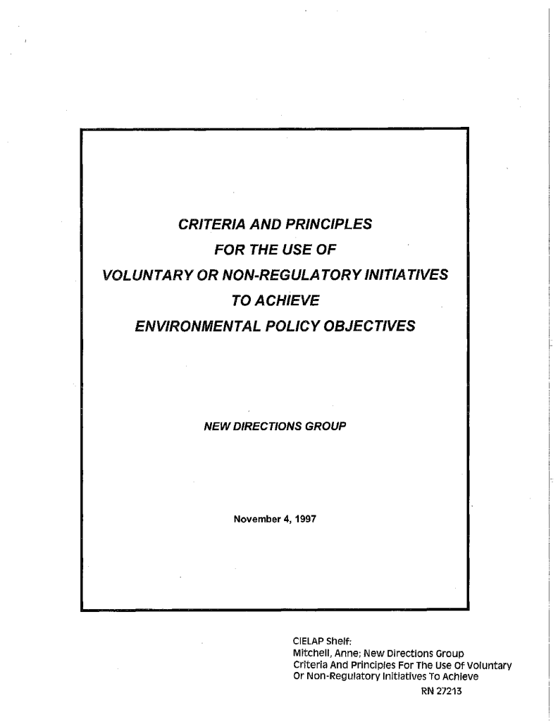 Criteria and principles for the use of voluntary or non-regulatory initiatives to achieve environmental policy objectives