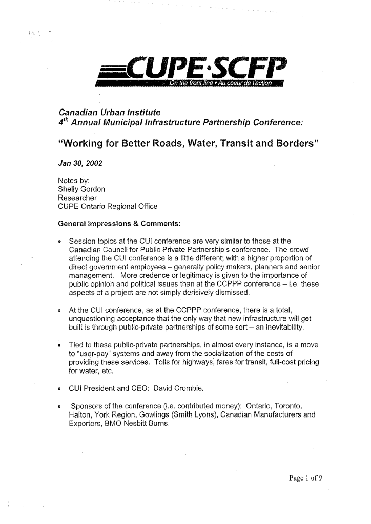 CUPE “Working for better roads, water, transit and boarders”