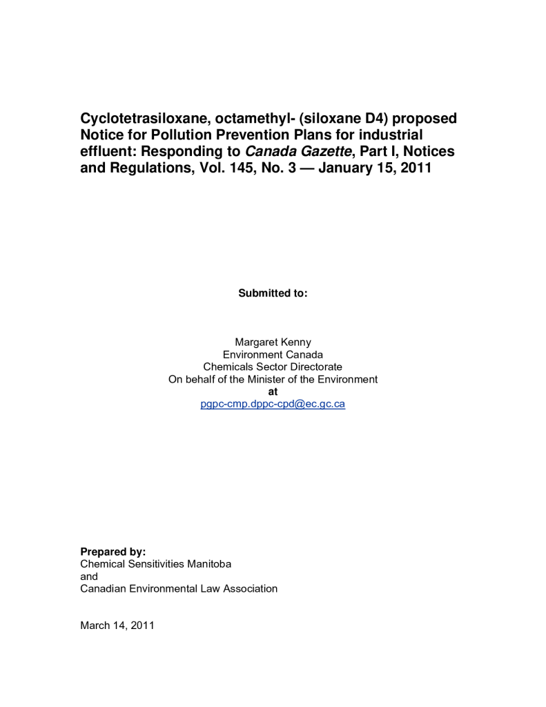 Cyclotetrasiloxane, octamethyl- (siloxane D4), Proposed Notice for Pollution Prevention Plans for industrial effluent