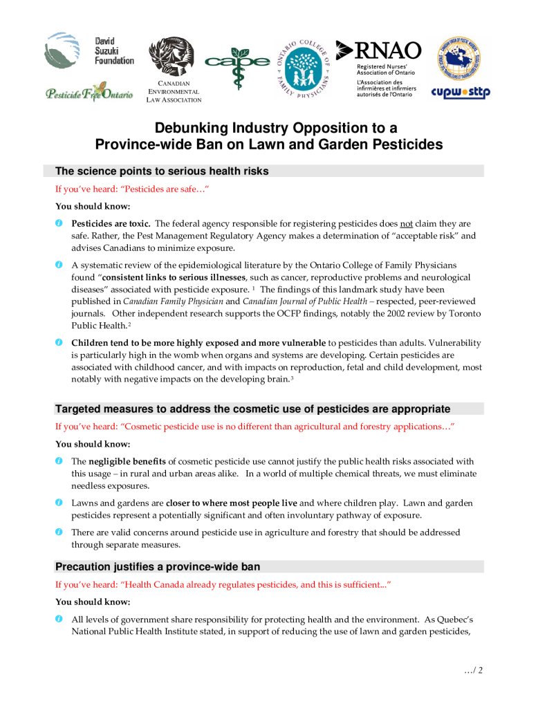 Debunking Industry Opposition to a Province-wide Ban on Lawn and Garden Pesticides