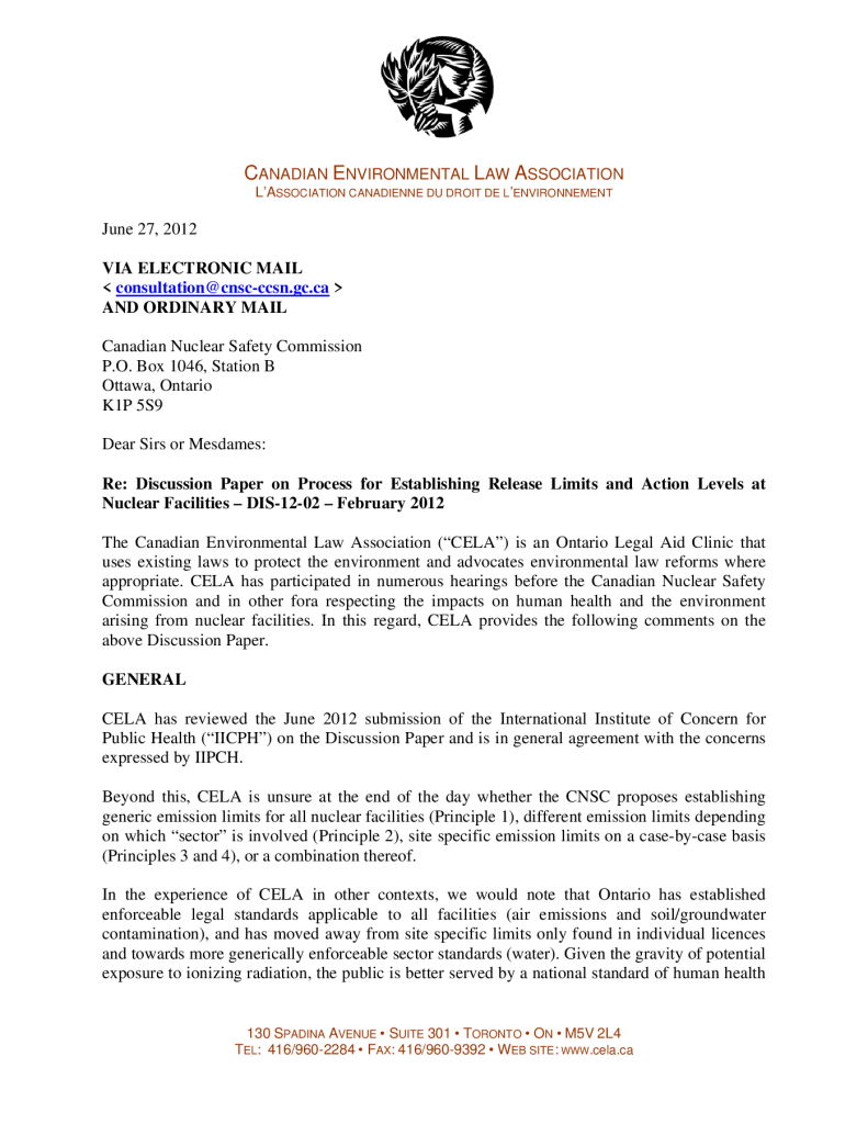 Discussion Paper on Process for Establishing Release Limits and Action Levels at Nuclear Facilities
