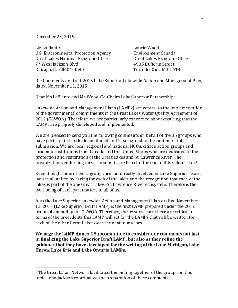 Draft 2015 Lake Superior Lakewide Action and Management Plan