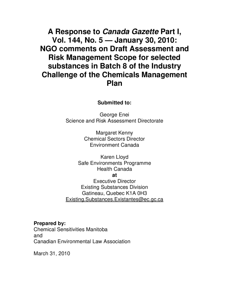 Draft Assessment and Risk Management Scope for selected substances in Batch 8, Industry Challenge, CMP