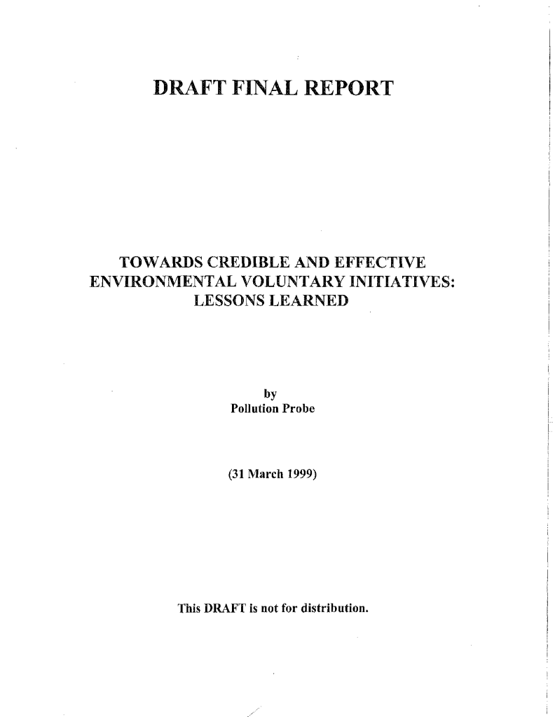 Draft final report : towards credible and effective environmental voluntary initiatives : lessons learned