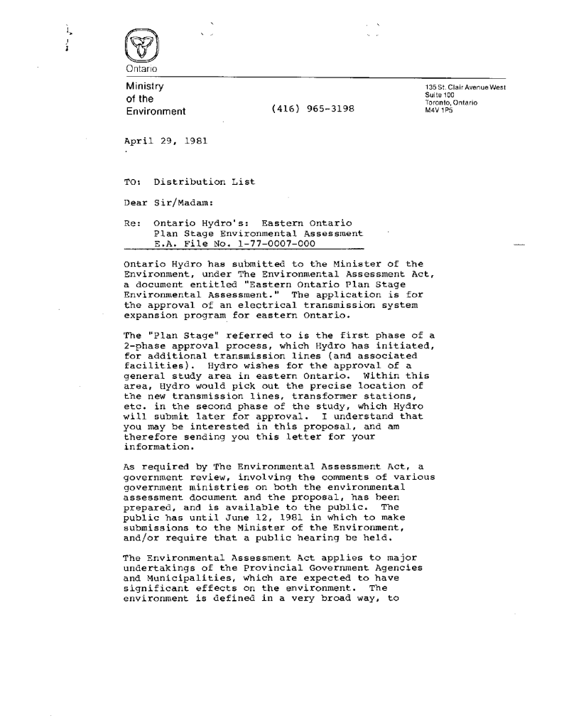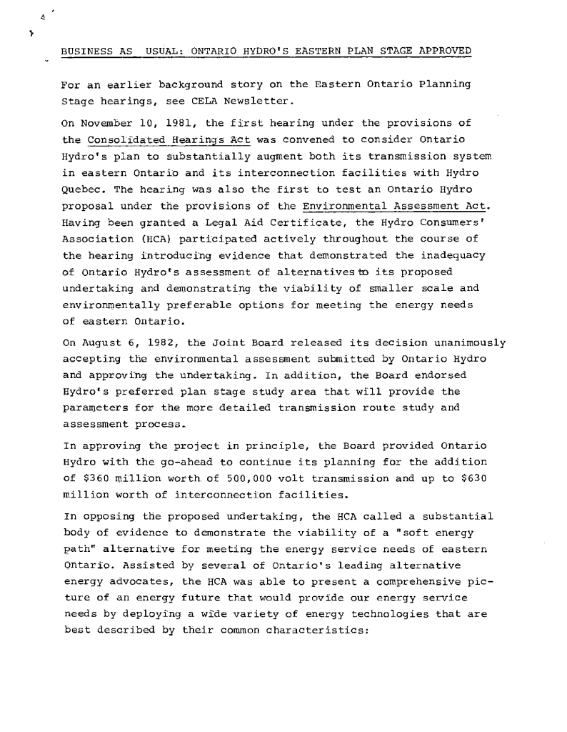 File 1.0 - Ontario Hydro East Transmission Expansion