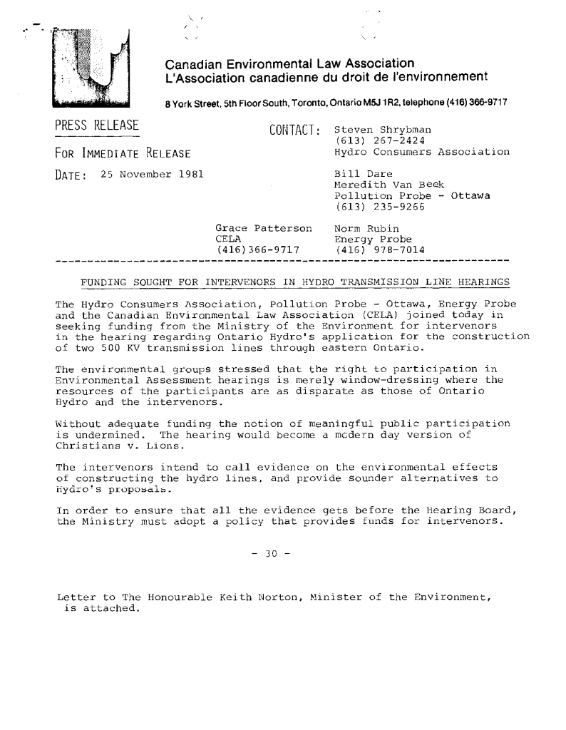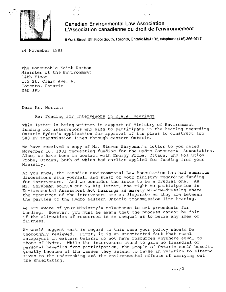 Fonds 1.0 - Canadian Environmental Law Association