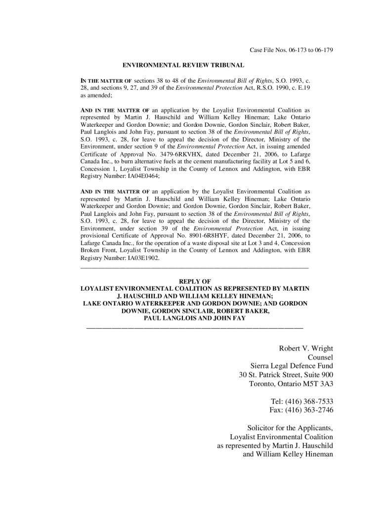 EBR Reply (re Lafarge Canada proposal to burn tires and other waste in cement kiln)