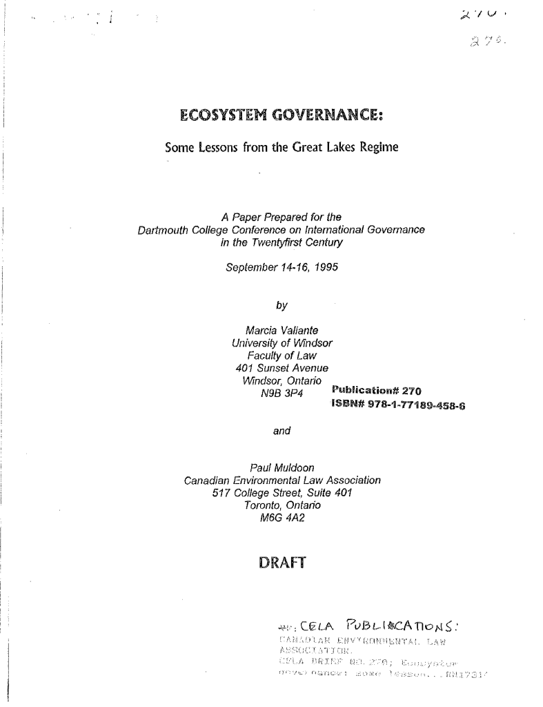 Ecosystem governance: Some lessons from the Great Lakes regime