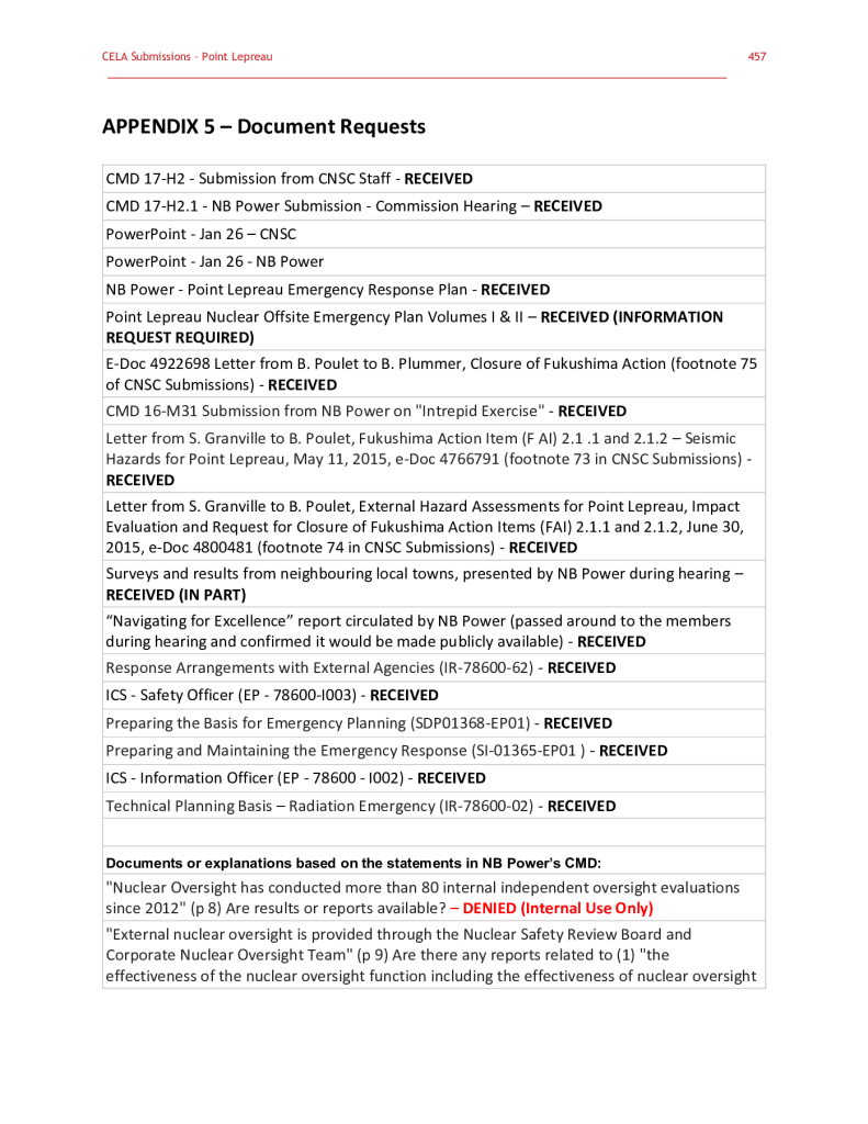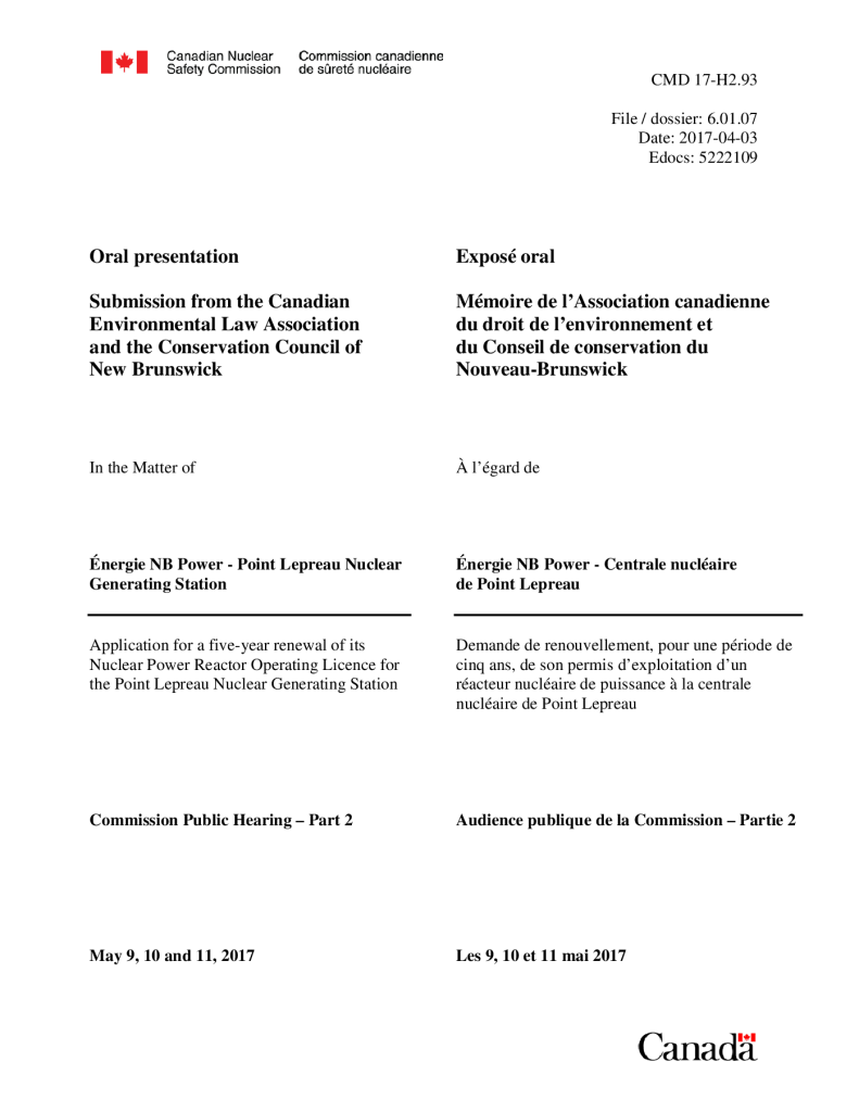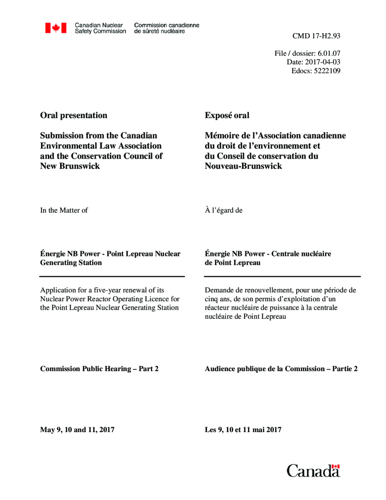 Emergency Planning at the Point Lepreau Nuclear Generating Station (written interventions)